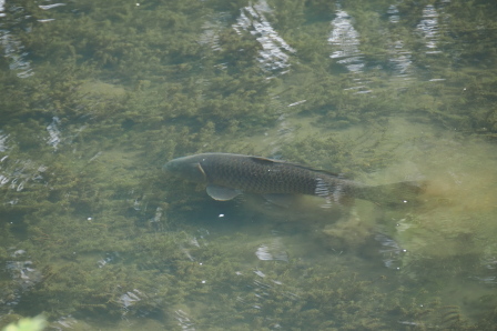 山田川にはこんな大きなコイが泳いでいます。 水温が下がってきたので、深い場所に移動するのでしょう。 |