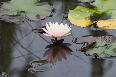 でも頑張ってまだ花を咲かせています。 水面に写った花の裏側も可憐です。 |