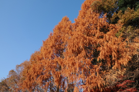 | メタセコイヤの木もすっかり色付きました。 私にはムックにしか見えませんが。 |