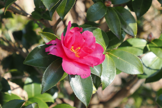 | サザンカはたくさんの花芽をつけているのでしばらく楽しめそうです。 花弁が散ると真っ赤なじゅうたんが見られます。 |