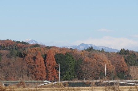 高原山の山頂がちょこっと見えています。 雪をかぶっていますね。 |
