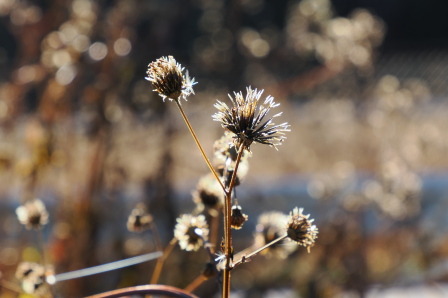 朝日を浴びて光っています。 引っ付き虫もきれいに見えます。 この後、靴下に引っ付かれ痛い目にあいました。 |