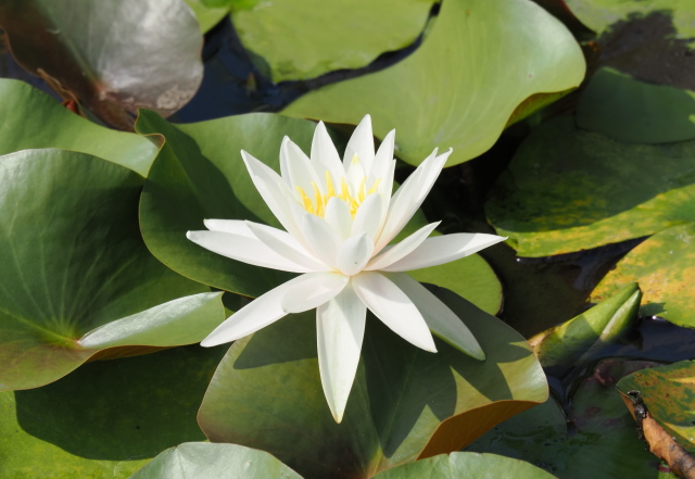 猿沢の池のスイレンはほとんど葉だけになってしまいました。 隅のほうに花がぽつりと咲いているだけです。 涼しくならないと花も咲きませんね。 |