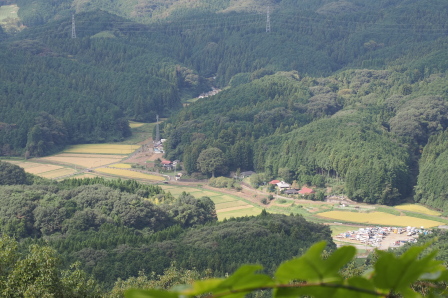 展望台直下の風景。 稲刈りが半分ほど終わっていました。 |