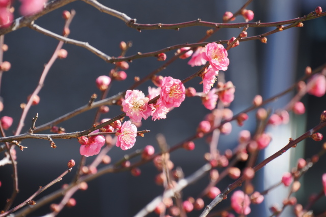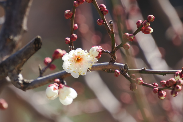 | こちらは自宅の梅の花。 今年は蕾をたくさん持っています。 |
