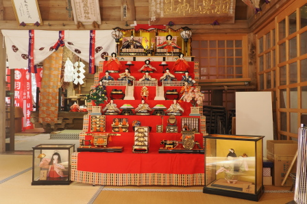 | 正面にひな人形が飾ってありました。 飾り羽子板もあります。 |
