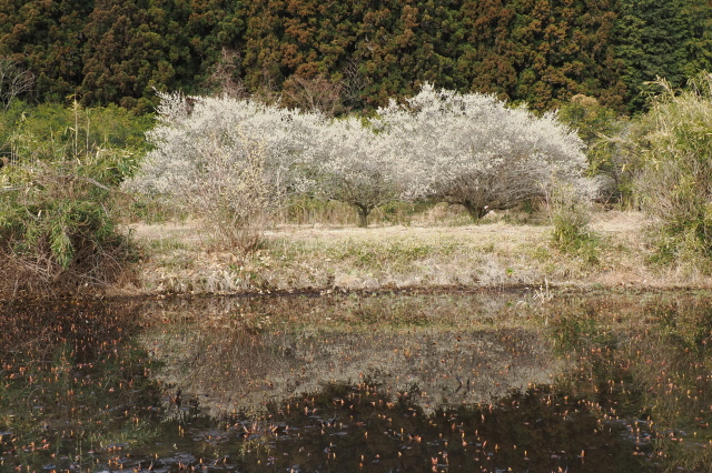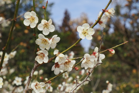 梅の花もほぼ満開。 花が早く咲いた木は散り始めていました。 |